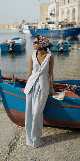 Style tip: Choose natural fabrics like cotton or linen, tuck in loosely at the waist, and finish with flat sandals or slides for a relaxed, refined look. Add a belt to finish off the ensemble.